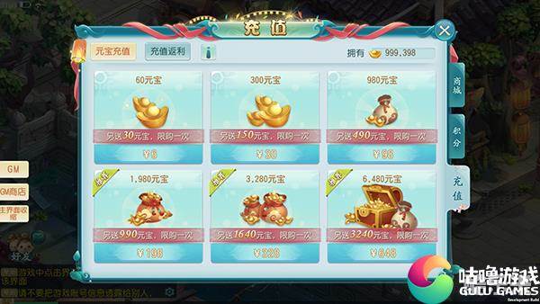 元宝可以购买商城内的所有道具,开启时装,创建帮派等。