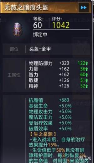 高洁誓言之头带镰卫本命套装之一,可以搭配霞龙之镰,成为镰卫的输出毕业套装,每1%的治疗效果转化为伤害,还可以将技能伤害转换为治疗