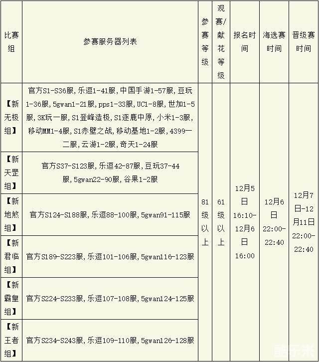 3、决出32强后为晋级赛阶段,之后每天晚上22:00分别决出16强、8强、4强、2强、跨服冠军!