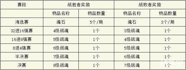 6、海选赛、晋级赛期间,参战玩家均可获得丰厚的魂石、战魂奖励,16强以上玩家还可在聊天时获得尊贵的“服战称号”。