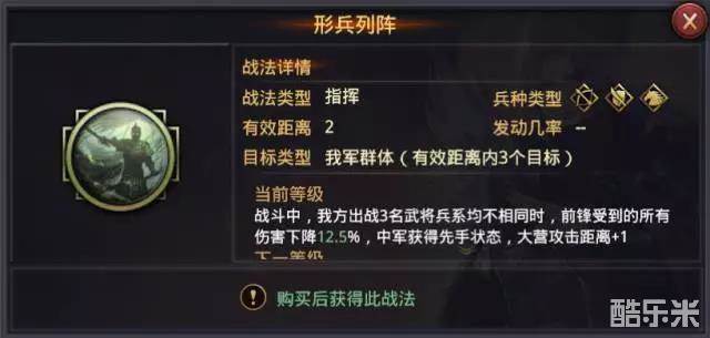 其中【猎敌之锋】为法系战法,【陷敌之谋】为物理系战法,而【形兵列阵】是一个综合型的战法。下面,笔者将逐一对这三个战法进行分析。