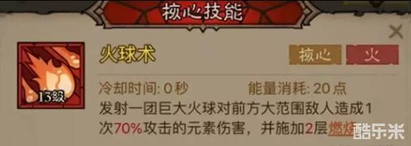 2、核心技能:火球术-炎爆。