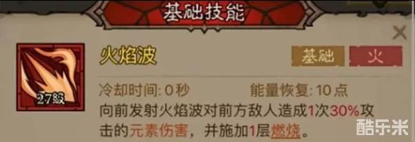 1、基础技能:火焰波-爆破,施加易伤效果。