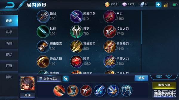 六神装:贪婪之噬+急速战靴+泣血之刃+名刃·司命+破军+破甲弓