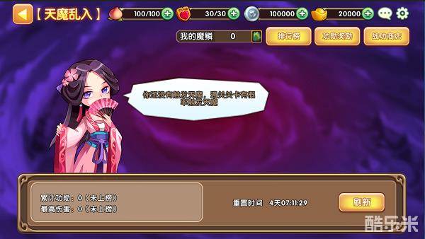 天魔乱入系统主要特色见上图,有角色对天魔的伤害信息,战功货币、BOSS列表、好友共享、重置时间、刷新功能、挑战功能、排行榜、功勋奖励、战功商店等。