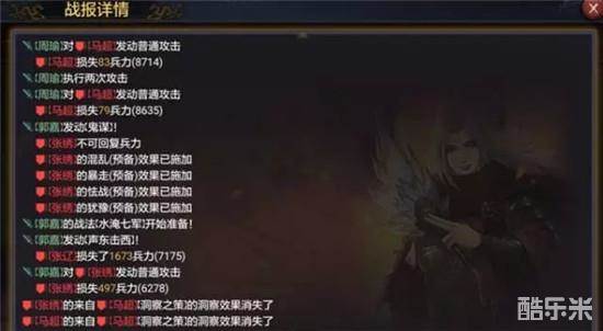 上图为鬼谋的实战展示,发动几率还是不错的,因为不需要准备回合,所以每场战斗在不受反计等控制技能英雄的情况下足以放出三四次,而三四次的效果足够让敌方一到两名武将被控制半程以上。