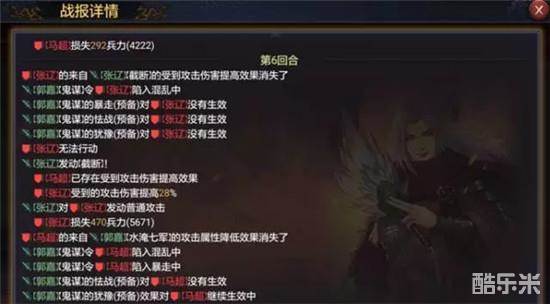 这是鬼谋发动控制效果的展示。可以看到张辽虽然避开了暴走怯战犹豫的魔爪,但因为有混乱生效所以前功尽弃,还是得乖乖的被制住一回合,而下回合又是一轮新的判定,也许脸帝可以避开四种控制,但是概率学告诉我们这种情况不会永远存在。