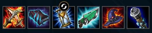 出装思路:利用时光之杖来叠加前期的属性和续航能力,巫妖增加平A伤害,中娅的沙漏保命,卢登的回声用来强化技能的伤害,可以使Q打出来更高的伤害,然后加法强和穿透就好了