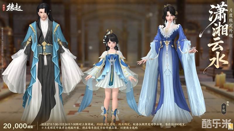 云生潇湘水接天,衣袂翩跹似流烟。月度限定外装「潇湘云水」踏云而至。外装新增千帆、清鹏偏色,尽显雅致风韵,成男、成女、萝莉款各有千秋,将山水灵秀与服饰之美巧妙融合。