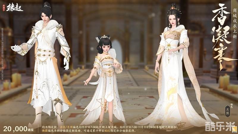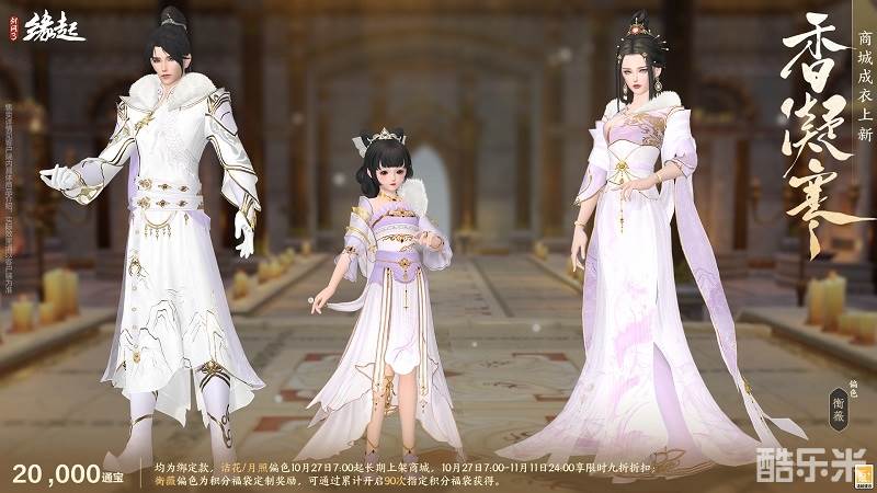 寒香凝露透清光,琼楼玉宇,素影摇霜,裁得冰绡作衣装。商城成衣「香凝寒」翩然而至。外装共有诘花、月照、衡薇三种偏色,衣间纹路细腻,尽显清绝之姿。
