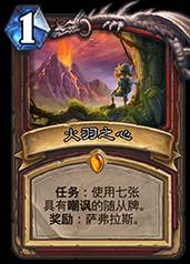 我们抽卡时要注意,火羽之心的任务难度不小,需要收集七张嘲讽随从,这并不容易。但奖励萨弗拉斯非常香,对于战士玩家来说很有吸引力。目前战士卡比较少见,这张卡的出现可能会让战士玩法有所改变。