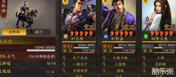 骑兵和弓兵是吕布的强势兵种,推荐用虎豹骑或西凉铁骑来强化突击战法触发率。加点方面,吕布全武力,郭嘉可以半速半智或者全速,黄月英则全统率。如果带周泰,记得把增伤和防御属性拉满。这些小细节都能让吕布在战场上更持久、更凶猛。