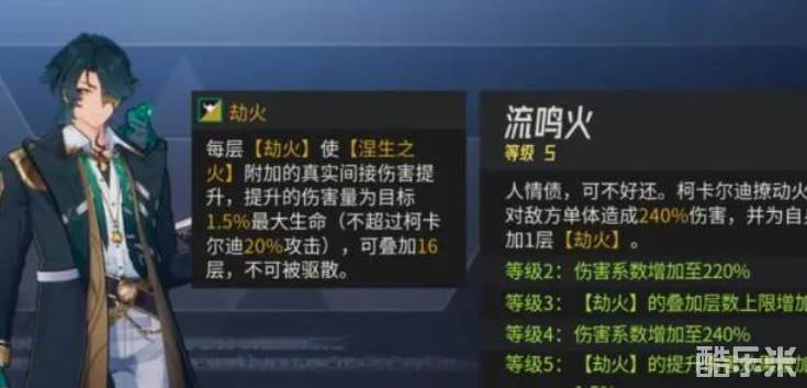 当柯卡尔处于控制状态下时,该被动无法生效。但只要他积累了足够的劫火层数,并在攻击时触发暴击,就能额外释放一段真实伤害,伤害值为敌方最大生命值的300%。不仅如此,暴击还会为全队带来增益:所有友方单位行动条前进20%,且暴击率提升,持续两个回合。同时,柯卡尔自身再获得两层劫火积累,进一步强化后续输出。