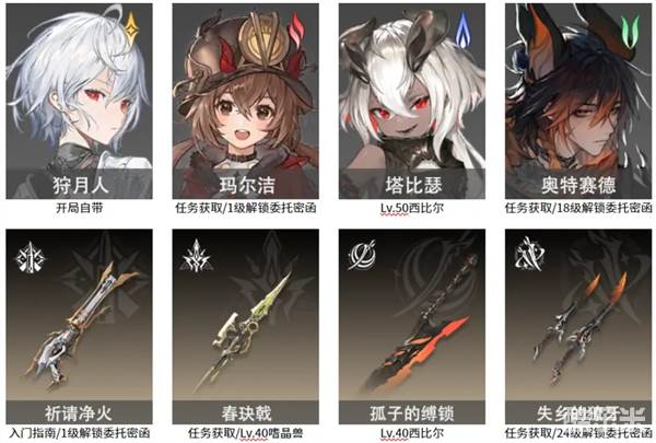 公测版本一共会有8名五星角色,以下是这8位角色和对应专武的获取方式: