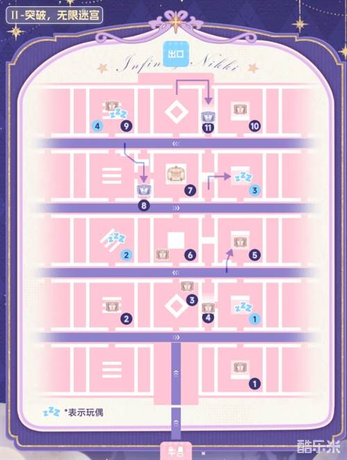 呼噜噜睡眠迷宫是无限暖暖1.6版本「天真季」新增的一个特色玩法,玩家可以通过酣眠之门进入沉睡咩咩的迷宫,寻找沉睡的石化小动物并离开迷宫,在迷宫中还分布这宝箱,以下是迷宫的平面图及宝箱的位置分享。