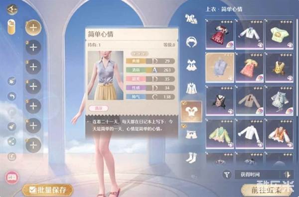 2、找到“简单心情”“瓶中信”(只有这两件才有织纹绘制)。