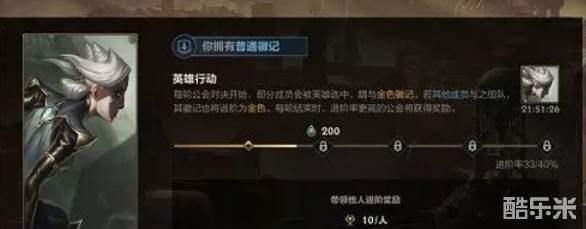 3、进阶率:每轮对决结束时,普通徽记进阶为金色徽记的比例,每提高20%进阶率,公会可获得一定公会经验;