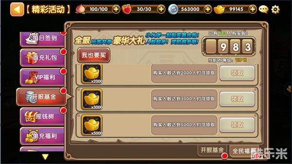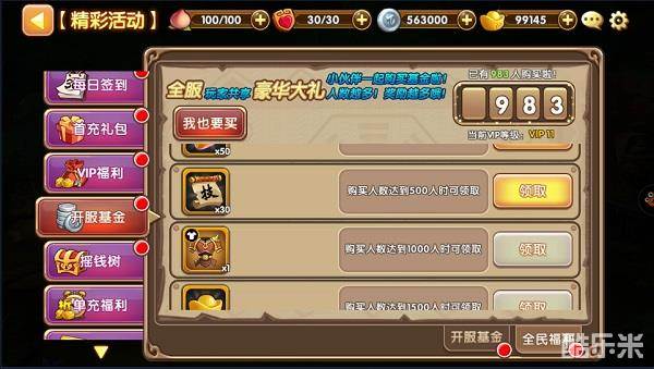 开服基金是无双小师妹在开服之际为小师妹的所有玩家准备的一份送福利的大礼,所有玩家在游戏中都可以通过购买开服基金后领取相应等级的元宝奖励,全民参与购买的人越多奖励越丰富哟!