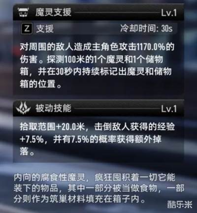 该魔灵的位置固定,且必定捕捉,此魔灵的技能可以增加拾取范围和寻找其他魔灵和储物箱