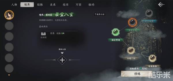 境界突破有一定的要求,大家可以在“添加心法”的上方看到解锁所需的条件。达成条件后消耗修为进行突破,提升境界可获得额外的属性。