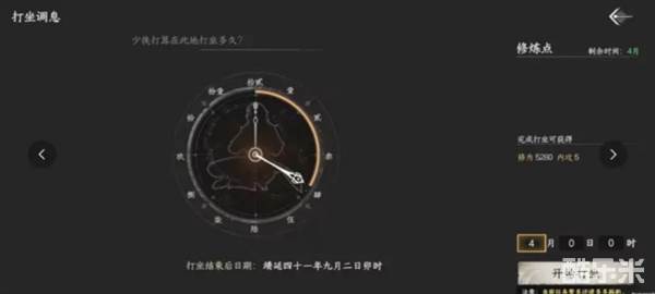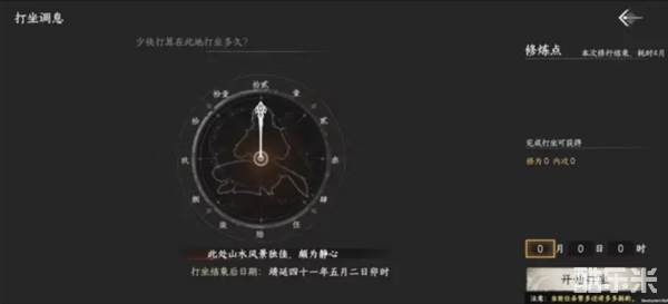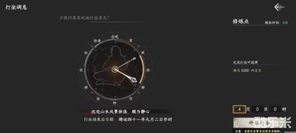 选择好打坐时间后,可以在右侧看到此次修行可获得的修为值,以及修行时间。