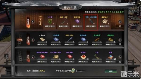 固定可到狂刀门,拂松门,爻光谷,兑换