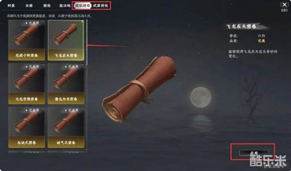 右上角-易容-衣橱,选中技能特效,把这些全部启用,显示已启用才会生效。武器也是一样