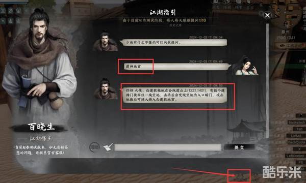 点击左下角江湖指引打开百晓生界面,输入要找的地宫名字,点击提交。等一下就好