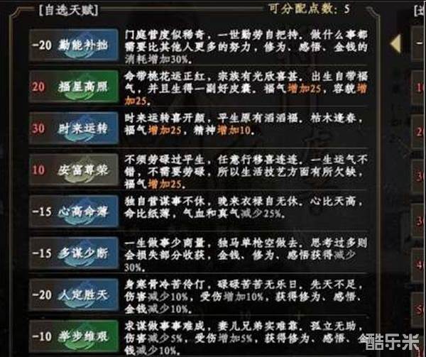 4、此外,还有一些其他类型的天赋,比如增加悟性、精神等,你可以根据自己的需求和玩法来选择合适的天赋。