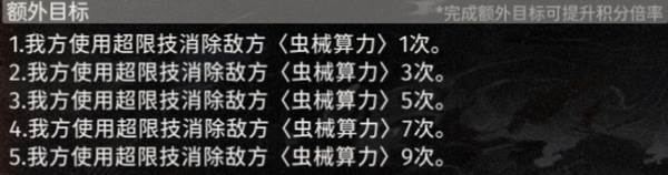 2、触手随本体血条下降一管后出现,且在下一回合叠加“算力叠加状态”。需要用超限技攻击触手解掉算力叠加状态获得额外分数,超限技每一段消除一层,因此结的多段大招比较有优势。