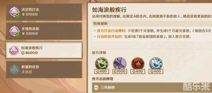 《原神》新铸镜研炼·无量疾战活动中,想要轻松达成3000积分领取全部奖励?本攻略将为您提供一套高效通关方案。按照下方打法操作,不仅稳拿3000分,甚至有望突破5000分,下面和酷乐米小编一起来看看吧