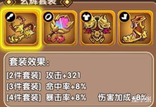 玄辉套(橙):2件-攻击+321、3件-命中率+8%、4件-暴击率+8%,伤害加成+8%