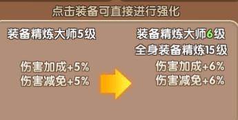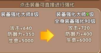 装备强化大师增加的属性、战力较多,为必要培养目标。