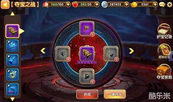 玩家在达到14级的时候即可开启夺宝之战功能,通过夺宝之战,抢夺法宝碎片,收集齐相应的法宝碎片后,即可合成法宝一枚!!!