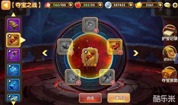 法宝之战内的蓝色法宝是随时可以合成的,只要你有精力,就可以去抢夺合成,如果萌萌的你暂时没有获得紫色或是橙色的法宝碎片,那么你可以到商城的道具界面内购买橙色法宝碎片袋,可以开出各类法宝碎片,或者就直接简单粗暴的进行抢夺,同样可以获得高级法宝碎片哦!