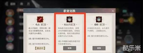 1、赵云转职【突击手】前3次大招后自拉条36%,加快攻击频率,配合关羽迅速秒人。