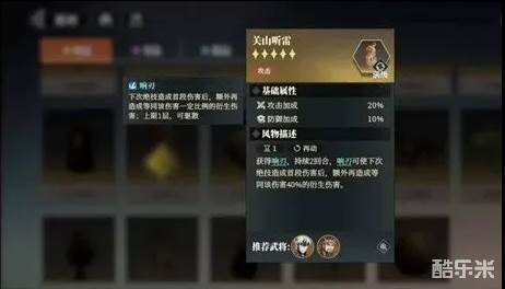 1、关羽携带关山听雷,使大招造成伤害后,再造成一次40%衍生伤害,相当于对最终出伤结果翻1.4倍。