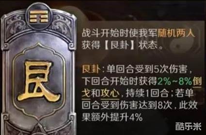 卦象解读:中慢速队整体打出一定输出的时间节点偏中后期(基本为从第四回合开始),在前期的伤害铺垫的过程中需要保证能维持一定的兵力,才能保证在中后期出伤。艮卦所提供的倒戈和攻心能够较好地维持队伍续航。