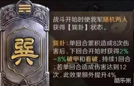 卦象解读:对善于造成异常状态的队伍,实战中前4回合全队累积造成10次甚至15次异常不难,能够给予控制队更多容错率,可有效限制敌方行动、打乱节奏,变相增加战法“奇门遁甲”的伤害量。