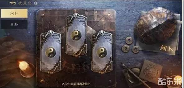 在霸业[克复中原] 阶段可开启观星台。主公可通过观星台每日观星或武勋商店获得共计8种效果的卦象,可选择最多3种不同的卦象装配至部队中,获得独特的战斗能力。卦象可以通过合卦来获得新的卦象,合成后卦象数值有概率提升,卦象初始品质越高则概率越高。