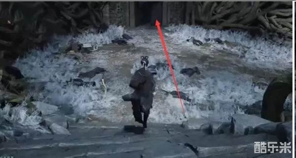 3、在楼梯这里从左边湖走,就可以向前面的楼梯走下去了。