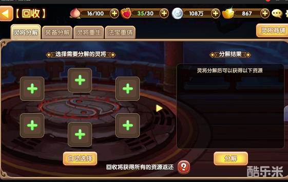 灵将分解,可以让你闲置不用的多余灵将分解成养成资源,这样你就不用花钱获得资源啦!那么上图吧!