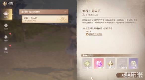 1、接取追踪!无人区的任务,点击跳转至目标页面。