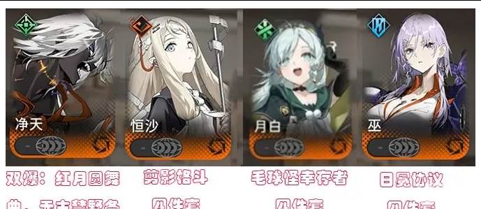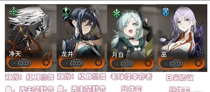 阵容搭配:月白(朝颜),净天、音希、鸦(千秋),龙井,巫。