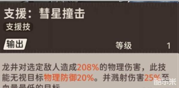 大招的弱化版,作为支援角色使用时可释放。但在开荒阶段,龙井作为支援位的情况较少见。
