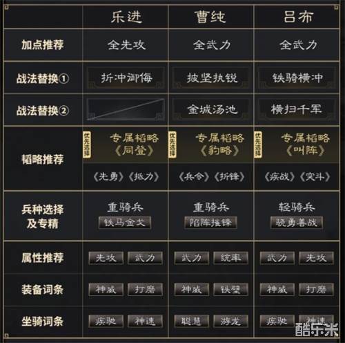 乐进选择重骑兵,兵种专精选择“铁马金戈”