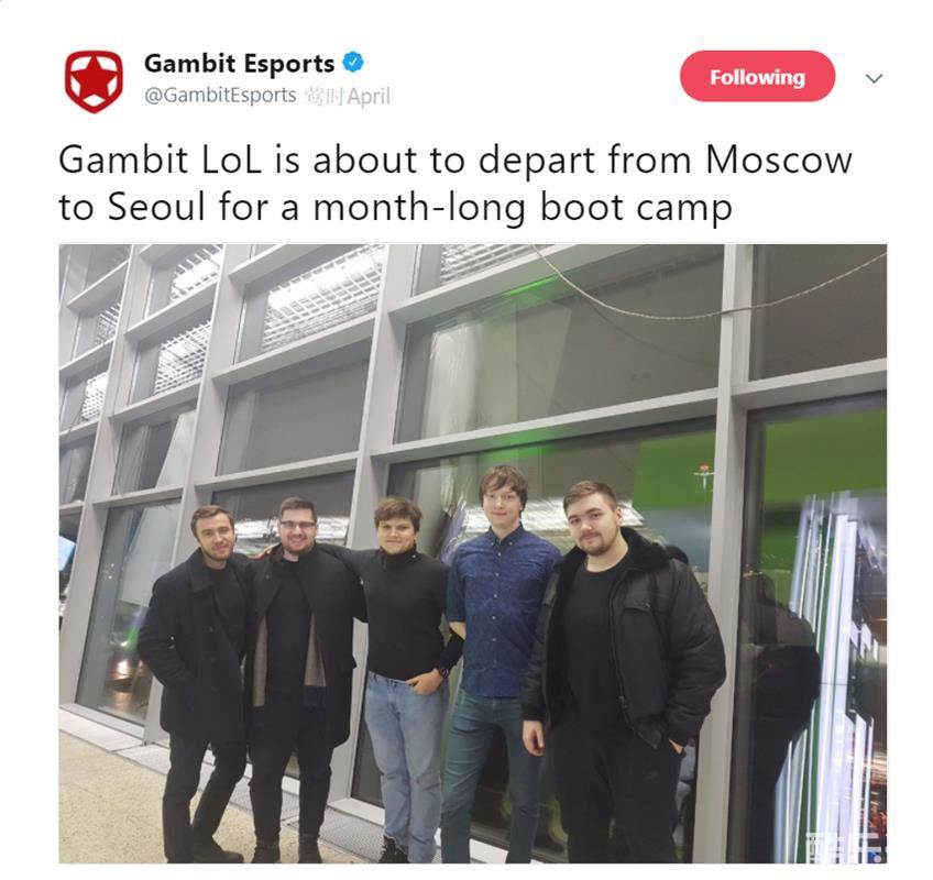 今天凌晨,Gambit战队官推发出了机场照片,称其英雄联盟战队将要离开莫斯科飞往首尔,进行为期一个月的集训。