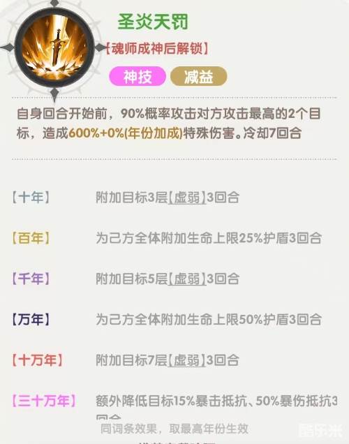 主动技能「神圣之剑」:对全体造成伤害,对存在减益状态的目标提升暴击率,并概率附加【审判】状态,使目标在出手时受到额外特殊伤害。