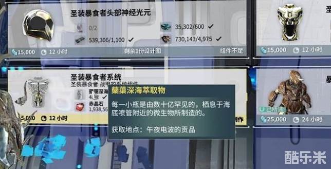 星际战甲深海蘖蕖萃取物是一种较为稀有的资源,主要用于制作特定战甲和装备。下面和酷乐米小编一起来看看吧