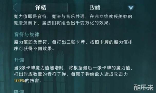 哈利波特魔法觉醒弗立维可根据最后的数值打出升调音符子弹。每颗子弹都能造成百分百的伤害,比如打出的是567费就会发射出七枚。三张魔力递减的时候,它可打出降调效果并让最后一张再生效一次。比如玩家打出的是543费,那3费会再出现一张且属性有所降低。如果是562这一种排列类型,会打出特殊效果并在圈内回魔。回响并不像赫敏或者哈利那样有限制,在搭配的时候比较灵活。